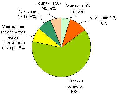 Источник: PMR, 2006 Согласно оценкам PMR, по итогам 2005 рынок ПК в Польше составил 8,4 млн. — именно столько компьютеров находится в стране в эксплуатации (в том числе в собственности частных хозяйств). На сектор малого и среднего бизнеса приходился 21 % компьютерной техники, в то время как на долю государственных органов управления и крупнейших польских компаний — лишь по 8 %. В среднем крупная польская компания располагает в настоящий момент 250 компьютерами. Предпосылки для роста польского рынка ИТ