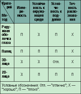Источник: НПО "Информация" Например, для распознавания по радужной оболочке глаза требуется ее изображение высокого разрешения. Из этого следует, что для точной идентификации человек должен располагаться по отношению к сканеру строго определенным образом, что неизбежно приводит к увеличению времени распознавания и повышению вероятности ложного нераспознавания (FRR). Кроме того, данная система может быть «обманута» фотографическим изображением “нужного” глаза, распечатанным с высоким разрешением или нанесенным на контактную линзу. Сложности в идентификации возникают также в случае расширения зрачка из-за усталости, болезни или применения медикаментов. Другой распространенный метод идентификации личности также в настоящее время не рассматривается в качестве основного в связи с возникающими сложностями при реализации. Распознавание по отпечатку пальца затруднено для работников физического труда, людей со слабо выраженными и стертыми папиллярными узорами, с дерматологическими дефектами, а также для пожилых людей с сухой кожей. Изображение поверхности пальца