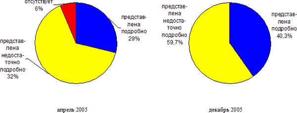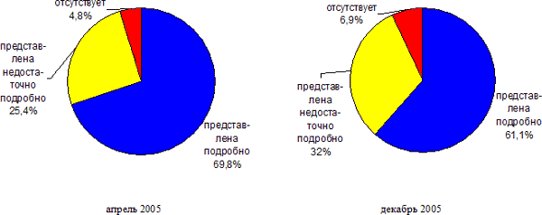 При проведении исследования в декабре 2005 года за основу был принят то же подход, что и ранее. Это позволило сравнить уровень информационного наполнения сайтов федеральных органов государственной власти по состоянию на декабрь 2005 г с теми показателями, которые были получены в апреле 2005 г.