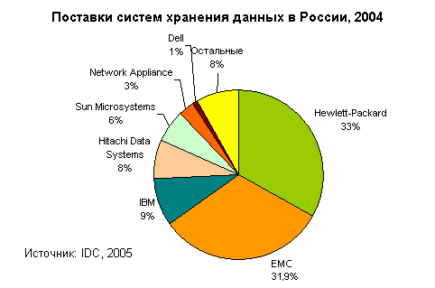 По данным IDC, российский рынок систем хранения сохраняет самые высокие темпы роста в регионе EMEA. Лидерами поставок аппаратного обеспечения являются Hewlett-Packard, IBM, SUN Microsystems. В программном сегменте лидируют EMC, Veritas, IBM. В выборе поставщика систем хранения российские потребители традиционно доверяют только иностранным, «раскрученным» вендорам.