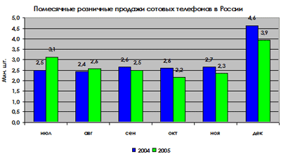 * - цены на телефоны приводятся без учета скидок при подключении к тарифным планам с абонентской платой выше 2 у.е. Кризис во благо? Однако далеко не все так благополучно на рынке. В фокусе пристального внимания ФТС оказались главным образом крупные московские ритейлеры, в то время как, например, более мелкие компании северо-западного региона продолжали ввозить трубки по «старым» схемам и зарабатывать сверхприбыли, что создавало ненормальную ценовую конкуренцию. По данным MRG, в Для борьбы с недобросовестной конкуренцией крупнейшие сотовые дилеры договорились предоставлять в органы информацию о своих менее добросовестных коллегах — тех, кто Кроме того, изменить ситуацию дилеры надеются с помощью производителей. «Связной», «Евросеть», «Беталинк», «Диксис», «Дивизион» и несколько других компаний писали совместное письмо производителям, в котором просили их регулярно предоставлять ФТС Но попытки наладить прямые поставки от вендоров — это уже следующая ступень «взросления» рынка. Пока же, сожалеют в «Диксис», все еще остаются недобросовестные участники рынка, экономящие на пошлинах и налогах (5% пошлина +18% НДС). Так, питерские компании, по утверждению московских конкурентов, до сих пор прибегают к помощи посредников. Существование таких компаний значительно затрудняет работу тем, кто ввозит товар с учетом всех требований налогового законодательства. Поэтому самостоятельный ввоз товара и привел к неизбежному росту цен — примерно на 20% у тех компаний, которые стали прямыми импортерами и участниками ВЭД. «Серый» рынок в регионах хотя и уменьшился с 90% до Какими будут окончательные итоги «скандала на таможне» с очки зрения изменения объемов продаж прояснится после обнародования данных по результатам всего 2005 года. Но уже сейчас можно предположить, что продажи у крупных дилеров если и упали, то крайне незначительно и на недолгое время — возросшие в кризис цены на мобильники и другую цифровую технику скомпенсировали снижение оборотов в штучном выражении. Так, по оценкам MRG с 20 августа по середину сентября прошлого года наблюдалось падение розничных продаж на уровне Другие крупные игроки считают даже, что августовский кризис рынка сказался в большей степени положительным образом. В «Диксис», например, утверждают, что первыми на рынке сотовой связи стали участником внешнеэкономической деятельности и перешли на самостоятельный ввоз оборудования в Россию, что позволило осуществлять ввоз товара без посредников. В результате, по словам руководителя службы по связям с общественностью группы компаний «Диксис» Татьяны Москалевой, значительно ускорился процесс поставки, и появились гарантии получения качественного, предназначенного для реализации в России и оформленного с соблюдением всех требований налогового законодательства РФ оборудования. Она также добавила, что занимаясь прямым импортом товара, ее компания может более точно прогнозировать его наличие на витринах магазинов. «Переход к прямому импорту также позволил повысить прозрачность бизнеса нашей компании для партнеров и инвесторов. На финансовых результатах компании кризис не отразился, за исключением, наверное, того дополнительного дохода, который нам удалось получить в условиях дефицита товара в сентябре и в октябре», — утверждает Осеннее «провисание» О