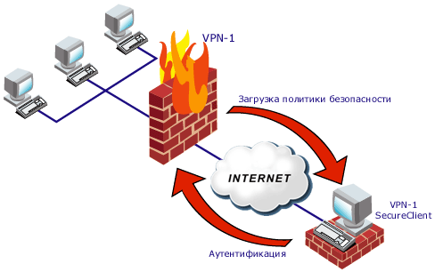 СИСТЕМА VPN-1 SECURECLIENTЧто такое VPN-1 SecureClient?Система VPN-1 SecureClient является расширенной версией VPN-1 SecuRemote и помимо установления защищенного взаимодействия с системой Check Point VPN-1 или VPN-1 SecureServer обеспечивает некоторые функции защиты рабочей станции, на которой она установлена. Система VPN-1 SecureClient является персональным межсетевым экраном, интегрированны в единую политику безопасности, используемую в корпоративной сети. Распределение политики безопасности, используемой системой VPN-1 SecureClient осуществляется централизовано, через сервер управления (Management Server).