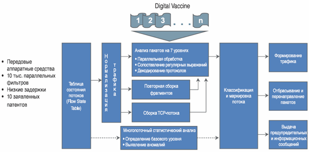 Одним из наиболее остро стоящих вопросов в любой современной организации является защита и обеспечение безопасности передаваемых данных и пользователей сети. Система предотвращения вторжения 3Com TippingPoint является признанным флагманом рынка IPS решений и позволяет современной организации полностью решить данную проблему. 3Com TippingPoint IPS — это удостоенная многих наград система предотвращения вторжений, которая позволяет проводить полный анализ потока пакетов и осуществлять непрерывную очистку внутрисетевого и Продуктовая линейка TippingPoint включает устройства производительностью от 50Мбит до 5Гбит. Это единственное Тщательно проработанные рекомендованные конфигурации фильтров обеспечивают мгновенное развертывание системы без дополнительной настройки. Обновление фильтров уязвимостей системы TippingPoint IPS осуществляется в автоматически или ручном режиме через службу TippingPoint Digital Vaccine. Упреждающий подход к обеспечению сетевой безопасности Системы обнаружения вторжений (IDS) по своей сути способны только выявлять нежелательный трафик, но не способны блокировать его. Высокая производительность систем TippingPoint и их исключительная результативность при предотвращении вторжений установили новый стандарт сетевой безопасности и коренным образом изменили способы защиты корпоративных сетей. Больше нет необходимости устранять последствия Решения TippingPoint позволяют существенно снизить расходы на Производительность решения Продукты TippingPoint имеют самую высокую в отрасли производительность. Для блокирования Технология Threat Suppression Engine Основополагающая технология, которая радикально изменила ситуацию с защитой сетей — механизм подавления угроз TippingPoint Threat Suppression Engine (TSE) на базе специализированных интегральных микросхем (ASIC). Благодаря сочетанию конвейерных принципов и механизма параллельной обработки, вычислительные средства TSE способны одновременно выполнять тысячи проверок в каждом потоке пакетов. Сочетание заказных ASIC, общей панели с пропускной способностью 20 Гбит/с и высокопроизводительных сетевых процессоров обеспечивает в архитектуре TSE полный анализ потока пакетов на уровнях Кроме того, архитектура TSE поддерживает такие операции, как классификация трафика и ограничение отдельных его видов. Изощренные алгоритмы автоматически притормаживают «нормальный» трафик с помощью пороговых значений и ограничений по скорости, что позволяет предоставить наивысший приоритет сетевому трафику критичных приложений.