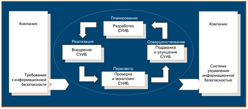 Процесс разработки и внедрения системы управления информационной безопасностью включает в себя следующие этапы.Первый — принятие решения на уровне руководства компании о создании системы управления. На этом этапе следует определить, будет компания своими силами разрабатывать систему управления и готовить ее к сертификации или приглашать консультантов. (Однако, как показывает практика, даже в случае приглашения консультантов, сотрудникам компании необходимо будет принимать активное участие этом в процессе).
