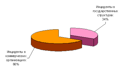 На долю частных предприятий приходится в 2 раза больше утечек, случаев саботажа и др. инцидентов, чем на госструктуры. Это можно объяснить несколькими обстоятельствами. Во-первых, количество частных организаций значительно превышает число государственных. Во-вторых, госструктурам легче скрыть факт утечки. Ведь нередко именно регулирующий орган допускает внутренний инцидент ИБ. Таким образом, возникает проблема отсутствия контроля над контролером (регулятором). Вместе с тем, о фактах кражи информации из госструктур иногда становится известно. Это происходит либо когда инцидент просто невозможно утаить, либо когда требуется провести показательное дело с наказанием виновных. К примеру, в течение многих лет правительство США умалчивало о случаях нарушениях внутренней ИБ. А теперь одна за другой появляются новости об утечках и дырах системах безопасности. Одним из последних в ноябре 2006 Налоговое управление США сообщило о пропаже почти 500 ноутбуков за последние 4 года.