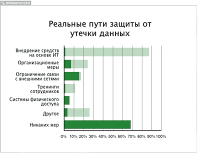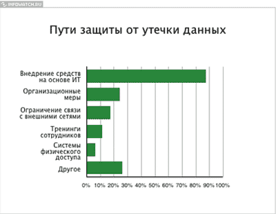 Тем не менее, на рынке присутствуют несколько достаточно известных продуктов, которые могут минимизировать риск нарушения конфиденциальности информации. При подробном собеседовании с респондентами аналитики компании InfoWatch выяснили, что большинство организаций слышали об этих продуктах, но не представляли возможности их использования для таких специфических целей.